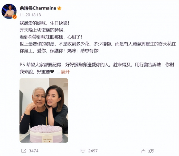 她也谈过几段恋爱,但都没有走到最后。她也表示过自己现在已经没有生孩子的想法了。所以她现在是花更多的时间放在陪伴家人上,前段时间她还在社交平台上和大家分享了妈妈过生日两人拍的合照。看的出来两人关系肯定很好,她的一大部分财产也应该会留给妈妈。