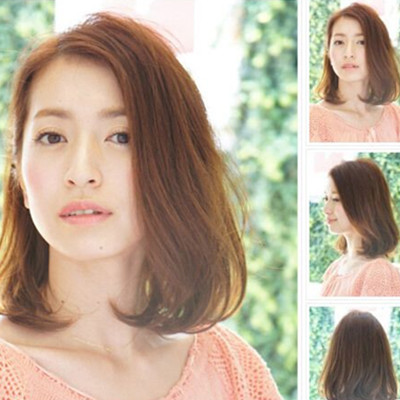发型点评:这款中长发推荐给大胖脸MM。蓬松的烫发效果搭配厚重的斜刘海,打造出一级棒的修颜效果。同时还能让脸蛋在视觉上看起来更加显小。