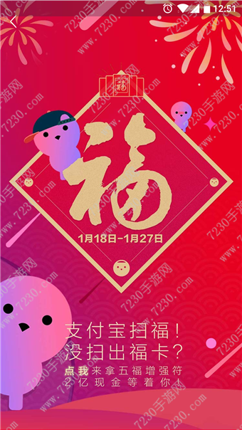 支付扫福字的福卡需要先点击扫一扫,然后扫任意的福字、自家贴的福字、菜鸟联盟包裹上的福、全国家乐福的福、阿里星球启动页面的福都可以。