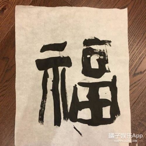 还有一张孙俪和儿子等等写下的“福”