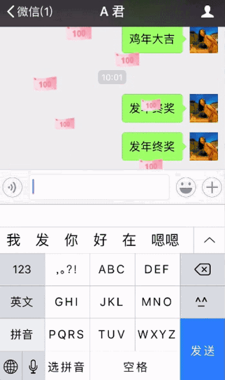 除了大家熟知的生日快乐、么么哒、想你了能触发特定的表情雨。现在输入「财源滚滚」「鸡年大吉」「福从天降」以及「发年终奖」都能看见表情雨了,如果有遗漏的希望大家在评论区里补充。