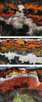 赤红的地层如燃烧的记忆,金色的山脊如觉醒的万丈光芒。 通过这些笔触,余先生提醒我们:“创世”并非一次性的事件,而是永无止境的努力与慢慢地展开——